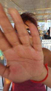 The newspaper is now a struggle to pick up in the wind. But life continues to move on. “Flowers are made of glass” The machinery-based shot is shown, the wheels are spinning, roulette is shown – love is a gamble, and now it is for him. The starfish is now in a clear tub. To be touched from the outside and not directly. The starfish is then shown amongst rotating machinery, this may be to represent the rotating nature of relationship between love and people. The woman lies in bed peacefully, her daily life is represented through a still image of the table, wine and the starfish (not contained in any way). The man and woman now face each other, and a pair of eyes with light coming through them is projected. The veil has been lifted. As they look at each other to ask – where did it go wrong? “beautiful like a flower of flesh” After their night together the relationship has changed. The man then looks at his hands with the starfish on a table. Contemplating with tape tracking the lines on his palms, otherwise fate – he holds his own. “Strike when the iron is hot” (although interpreted in English this way) he missed his chance at love. He had ceased to see the beauty in her and in turn his days had turned dark and dreary. His fortunes have changed.